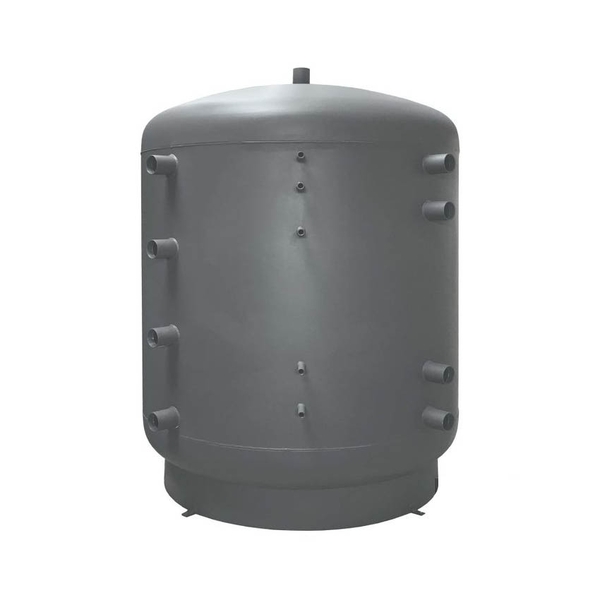 Akumulační nádrž bez izolace (na dokoupení) pro distribuci tepelné energie z kotlů na pevná paliva, tepelných čerpadel případně jiných zdrojů tepla. Nádrž má 9 návarků G 2,5" pro připojení tepelných zdrojů a zátěží nebo vložení el. topných těles.