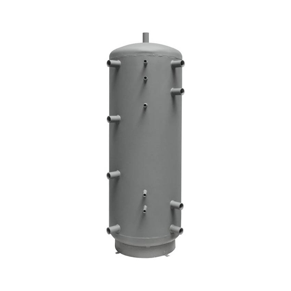 Akumulační nádrž bez izolace (na dokoupení) pro distribuci tepelné energie z kotlů na pevná paliva, tepelných čerpadel případně jiných zdrojů tepla. Nádrž má 9 návarků G 6/4" pro připojení tepelných zdrojů a zátěží nebo vložení el. topných těles.
