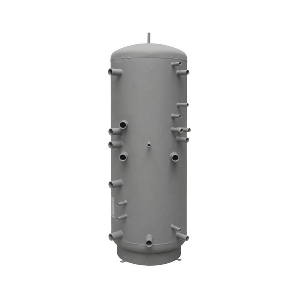 Kombinovaná akumulační nádrž bez izolace (na dokoupení) s přípravou teplé vody v nerezovém výměníku, vhodná pro tepelná čerpadla, kotle i krbové vložky. Umožňuje kombinaci zdrojů, instalaci el. topných těles i využití přebytků z FVE.