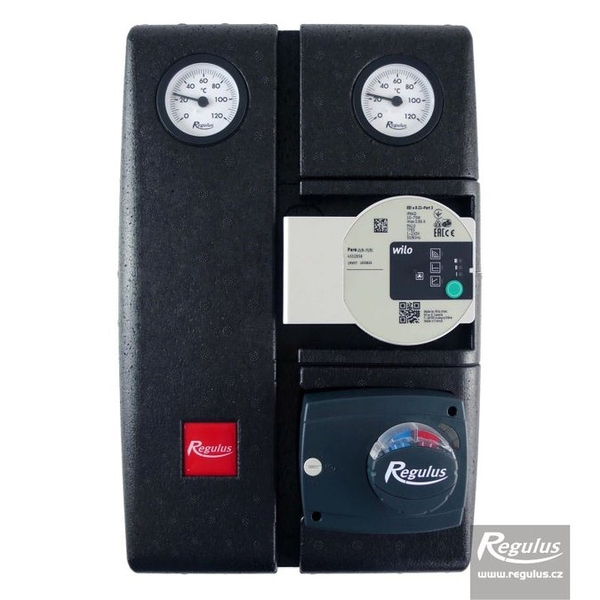 Dvoutrubková čerpadlová skupina s nízkoenergetickým oběhovým čerpadlem Wilo PARA 25/8 SC, filtrem s magnetem, směšovacím ventilem s pohonem, zpětným ventilem pod filtrem, kulovými kohouty, teploměry a šroubeními pro připojení k rozdělovači. Připojovací rozteč 125 mm. Umožňuje uzavření otopných okruhů, kontrolu teplot a snadný servis.