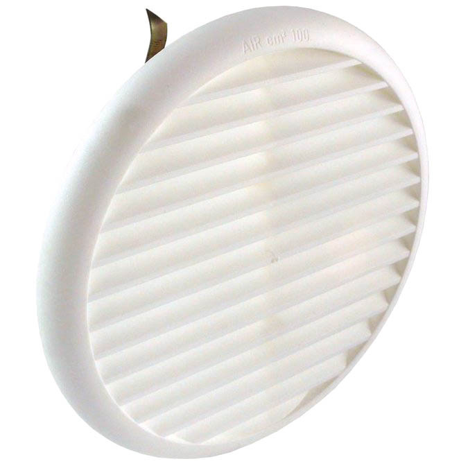 Plastová větrací mřížka s integrovanou ochranou sítkou, určená pro kruhové vzduchotechnické potrubí s průměrem od 80 mm do 125 mm.