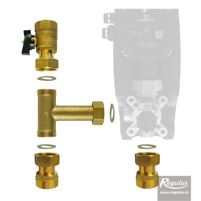 Sada pro snadné připojení čerpadlových skupin CSE MIX 1" M na rozdělovače otopných okruhů Regulus. Obsahuje T-kus, 2 ks šroubení a kulový kohout.