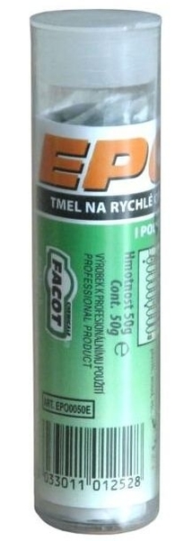 Dvousložkový epoxidový tmel na rychlé opravy děr a prasklin. Použití pro kovy, plasty, dřevo, pro opravy trubek pod vodou, bazénů, nádrží, spojů, trvalých těsnění; v domě, na autě, na lodi či v přívěsu. Balení 50 g.